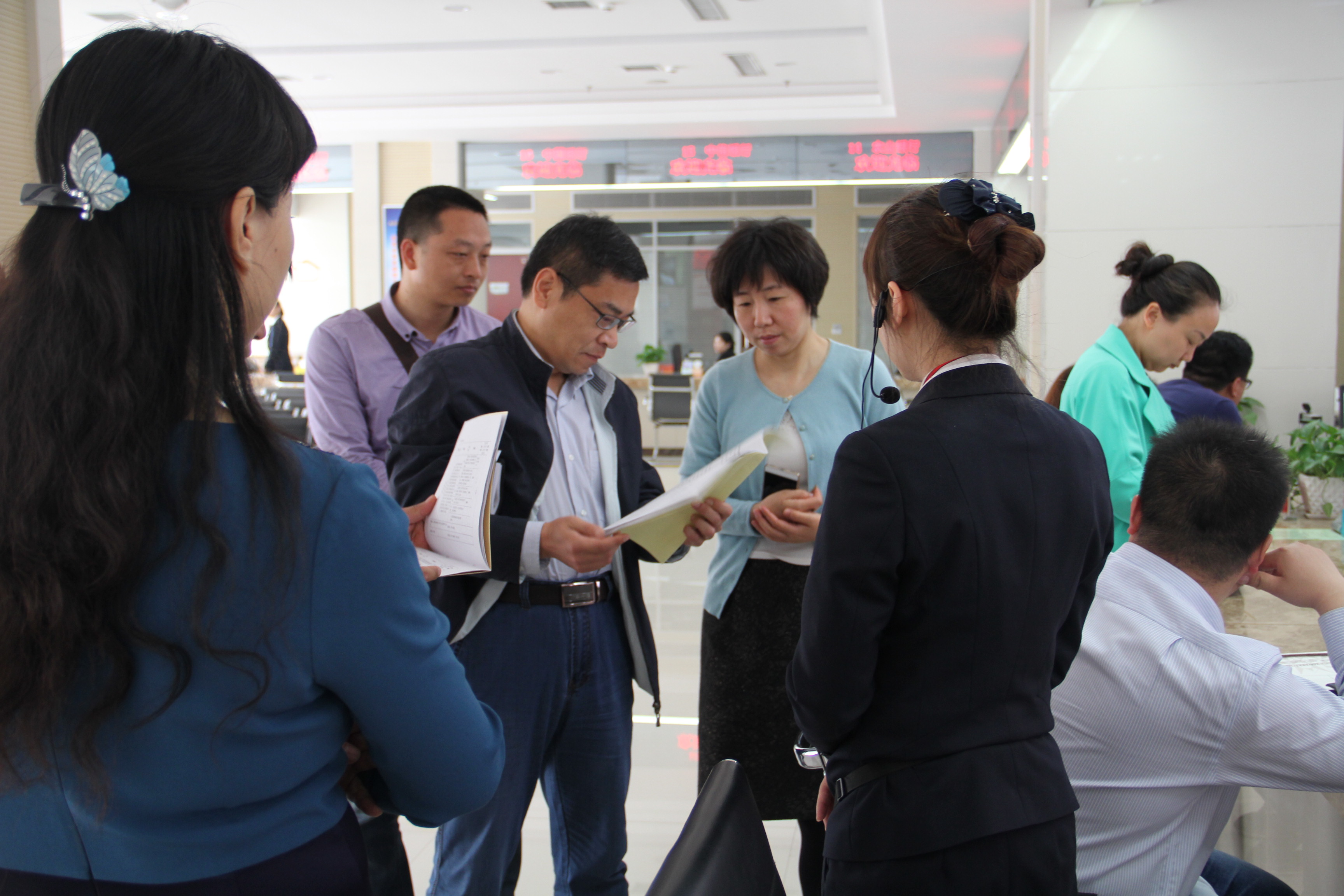 在焦作中心,参观了业务服务大厅,认真学习了焦作中心“6S”服务管理模式。